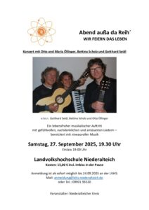 ← Abend außa da Reih´, am 27. September 2025, ein Konzert mit „Otto Öllinger & Freunde“.
