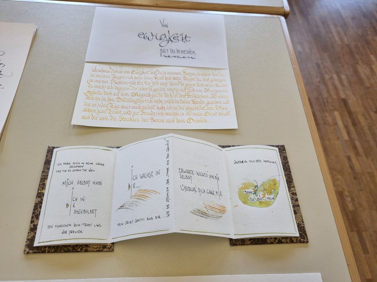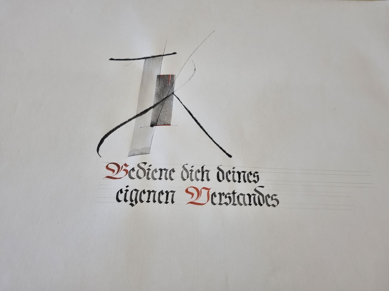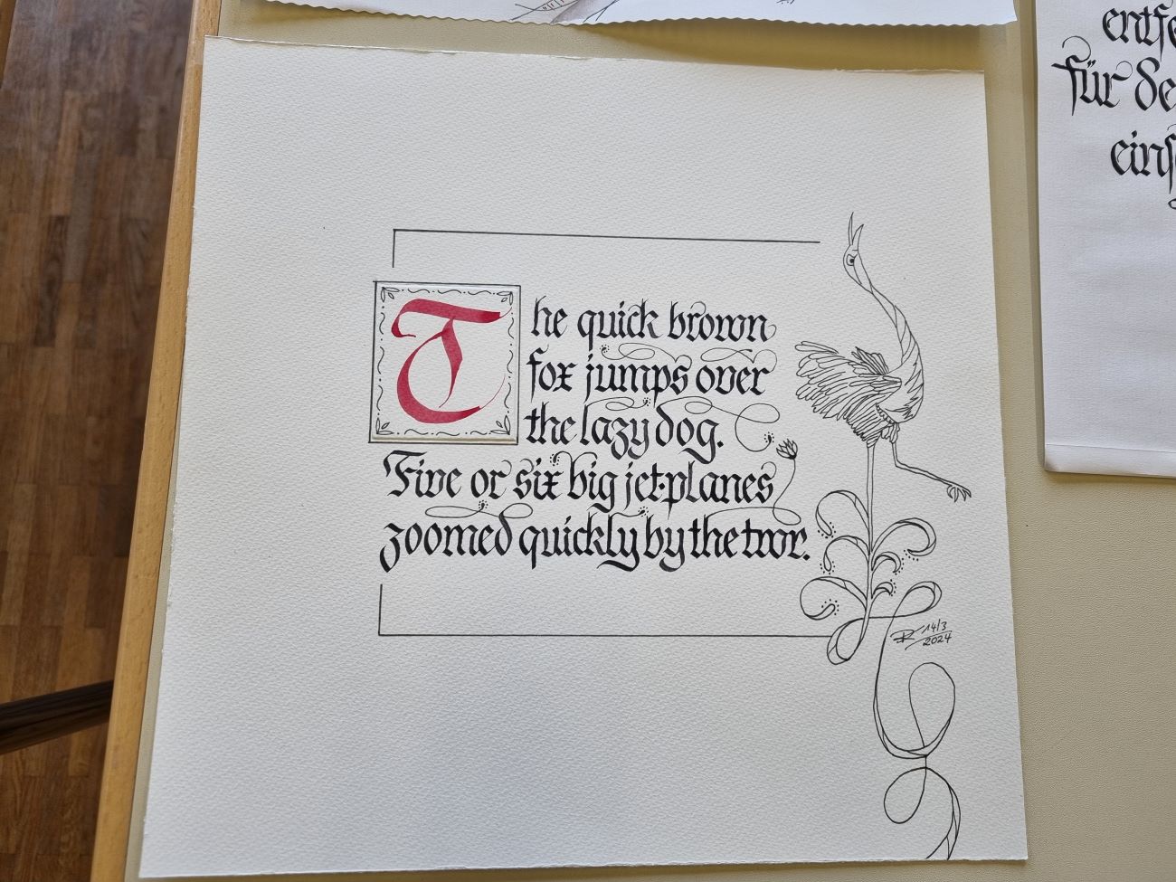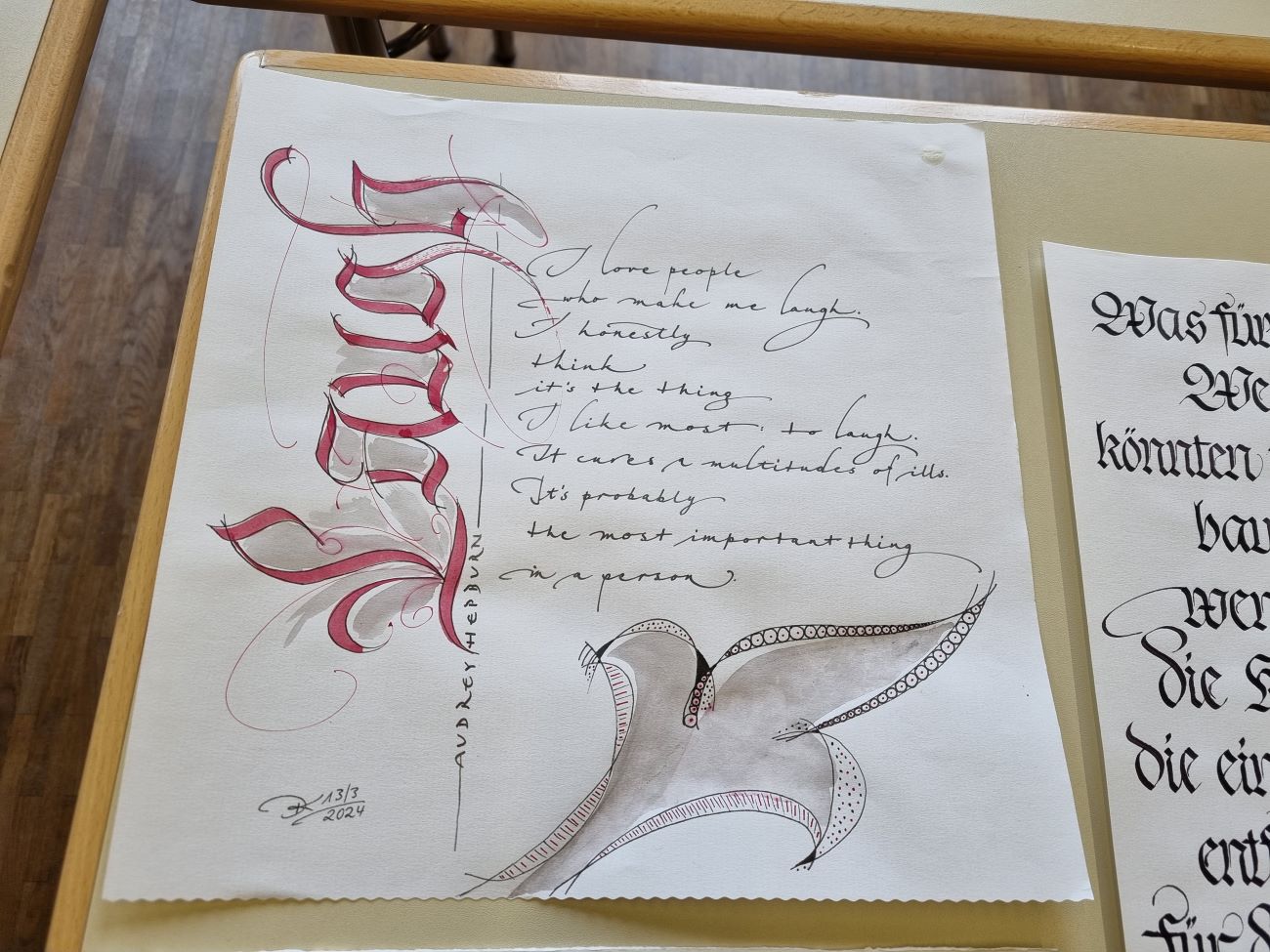 Fraktur – Grundlagen, Variation und Verzierung, war das Thema der Kalligrafiewoche im März. Es entstanden kunstgerechte Arbeiten unter Anleitung des Kalligrafen Thomas Hoyer.