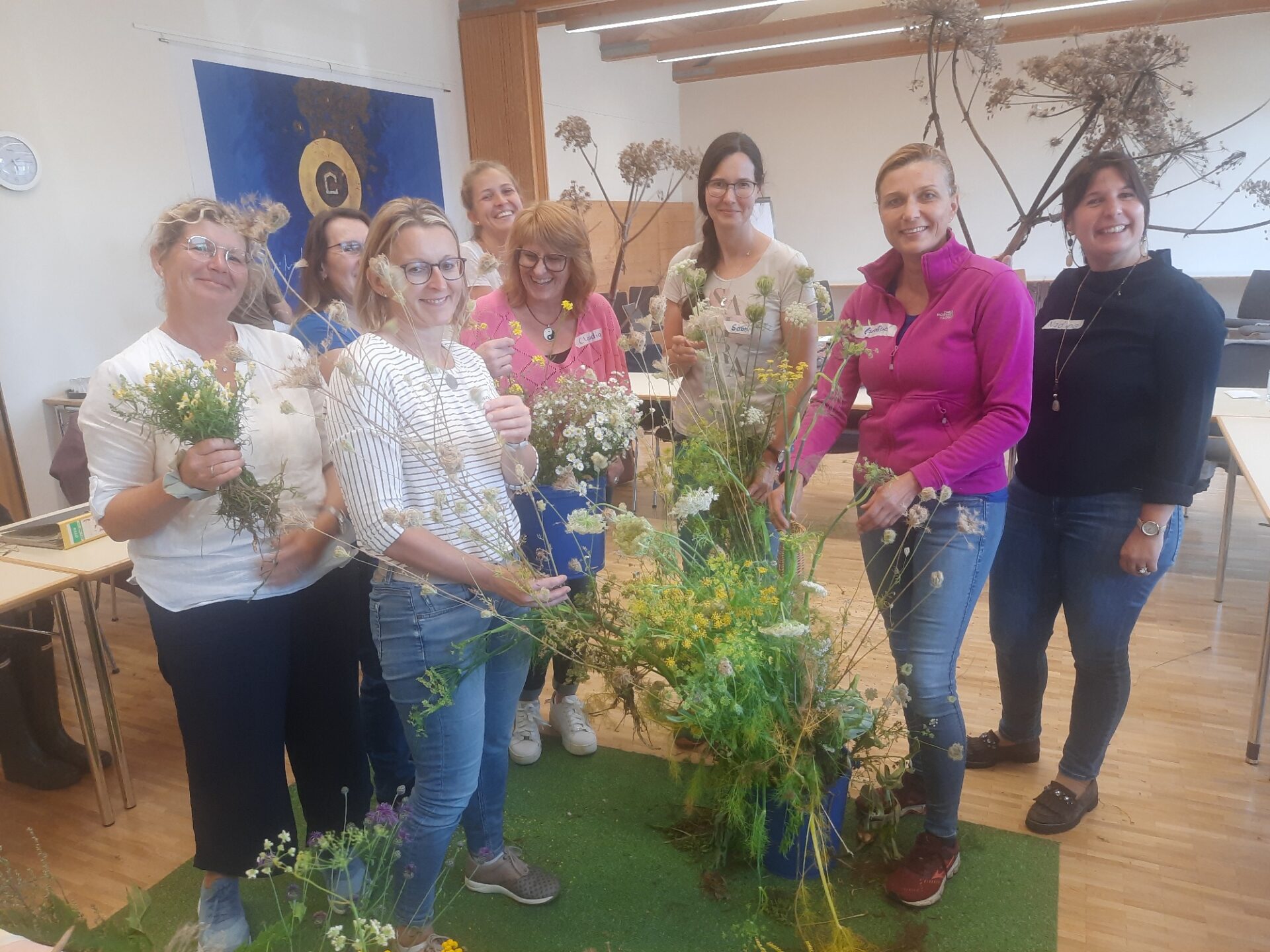Die Kursinhalte werden ausschließlich in Präsenz vermittelt. Vorteil des Kursortes ist es, dass im Haus eine Lehrküche ermöglicht, die gewonnenen Pflanzenerkenntnisse kulinarisch und kreativ in die Praxis umzusetzen. Vielfältige Lebensräume rund um Niederalteich führen in die Zusammenhänge zwischen Biologie, Ökologie und die Nachhaltigkeit der Schöpfung ein. Eine erste Besonderheit wurde gleich im ersten, zweitägigen Modul entdeckt: Der Große Wiesenknopf, der in Bayern leider von seiner Art her rückläufig ist. „Dass Cordon Bleu aus Beinwellblättern und Gierschpastete als Mittagsmenü so viel Kraft geben, hätte ich mir nie träumen lassen“, schwärmte der einzige männlich Teilnehmende Christian aus Hengersberg im neuen Kurs. Zwei Teilnehmerinnen stellten bereits die ersten Pflanzensteckbriefe für das Eisenkraut und die Schafgarbe mit allen Sinnen vor.