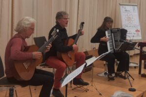 Dazu sang und spielte er auf seiner Gitarre passende Lieder auf seine bayrisch-tiefsinnige Art. Gemeinsam mit seiner Frau Maria präsentierte er Volkslieder und alte Schlager. Gotthard Seidl, der sich selbst als „Hobby-Musiker“ bezeichnet, ist ein begnadeter Gitarrist und die Zuhörenden staunten über die professionelle Darbietung.